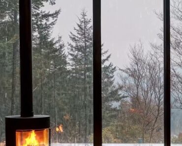Fireplace, leather seating, and floor-to-ceiling windows framing a breathtaking … June 25, 2025 Tiny Houses
